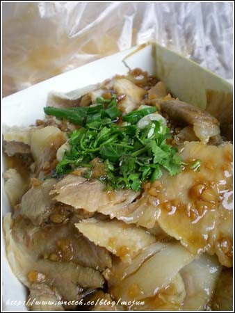 所以就簡單點個魚香豬腳麵線、蒜泥白肉和開陽白菜,帶回民宿配炒泡麵吃。