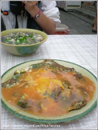 不敢吃蚵仔的我只能點蚵仔煎。想說有醬料,多少可以壓過蚵仔的味道。